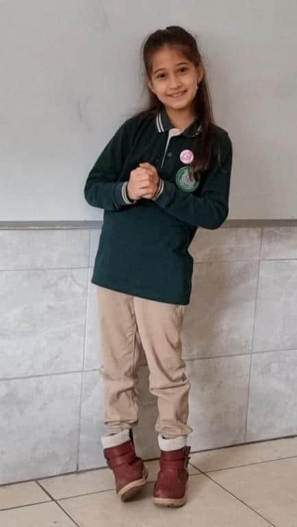 * Doğal ve sağlıklı kumaşlardan (esnek pamuklu), haki renkli taktik (kargo) pantolon (kızlar için pantolon etek ya da etek de olabilir)